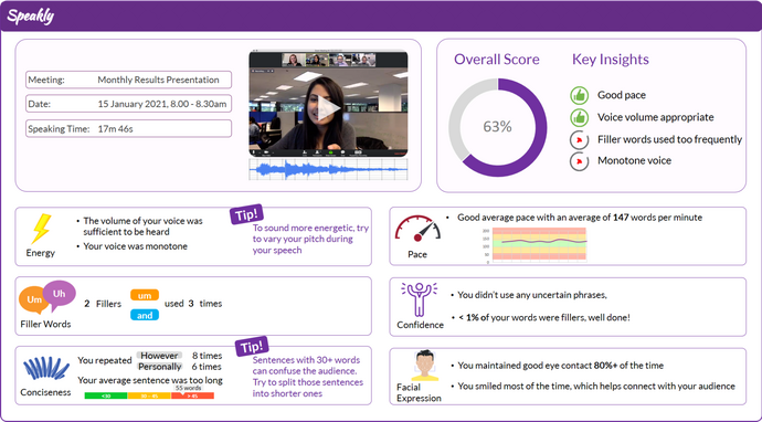 SPEAKLY analyses how you speak and provides feedback and tips to improve